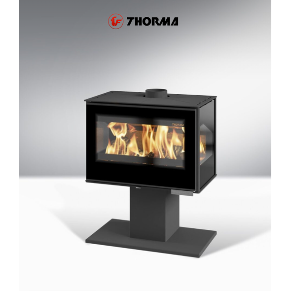 Печь-камин Thorma MONACO UNI LEG — современная дровяная отопительная печь европейского производства с панорамным обзором огня и стильной установкой на декоративной ножке. Модель сочетает высокую мощность, эффективное распределение тепла и выразительный дизайн, благодаря чему подходит как для отопления дома, так и для создания уютной каминной атмосферы.
