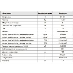 • Диаметр вентилятора