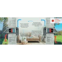 Проветриватель подаёт воздух, а рекуператор дополнительно сохраняет тепло.