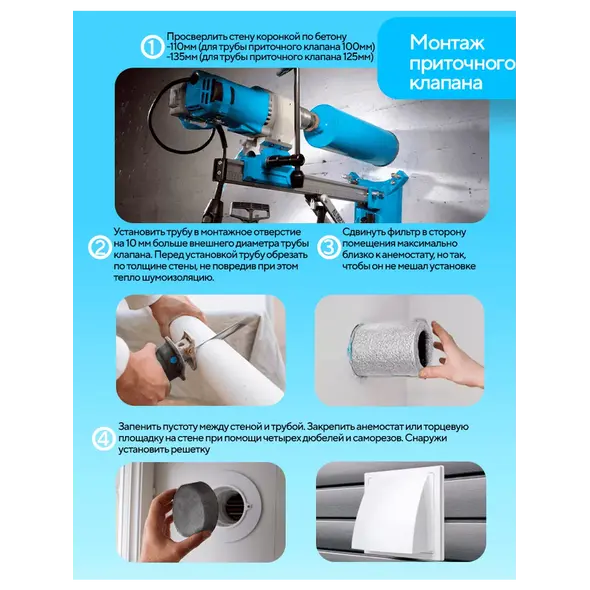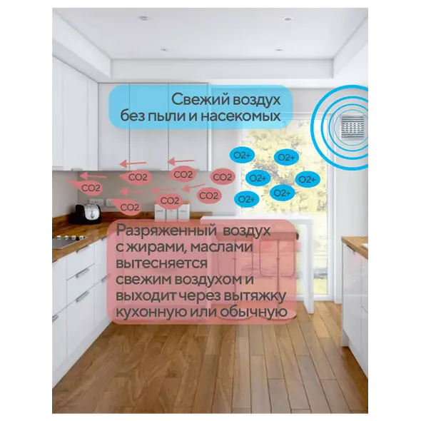 Производительность приточных клапанов напрямую зависит от работы вытяжной вентиляции и может варьироваться.